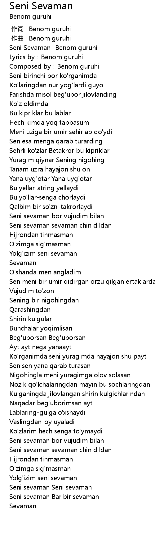 | [00:00.05] | Seni Sevaman Benom guruhi |