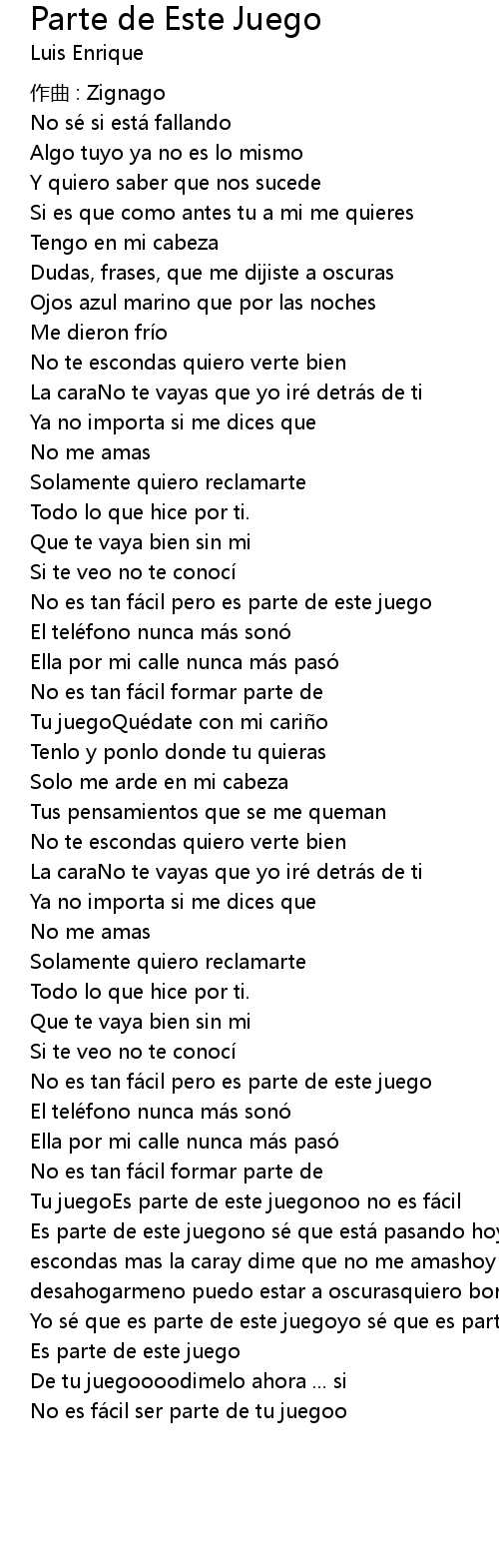 | Yo se que es parte de este juegoyo se que es parte de tu juego | |