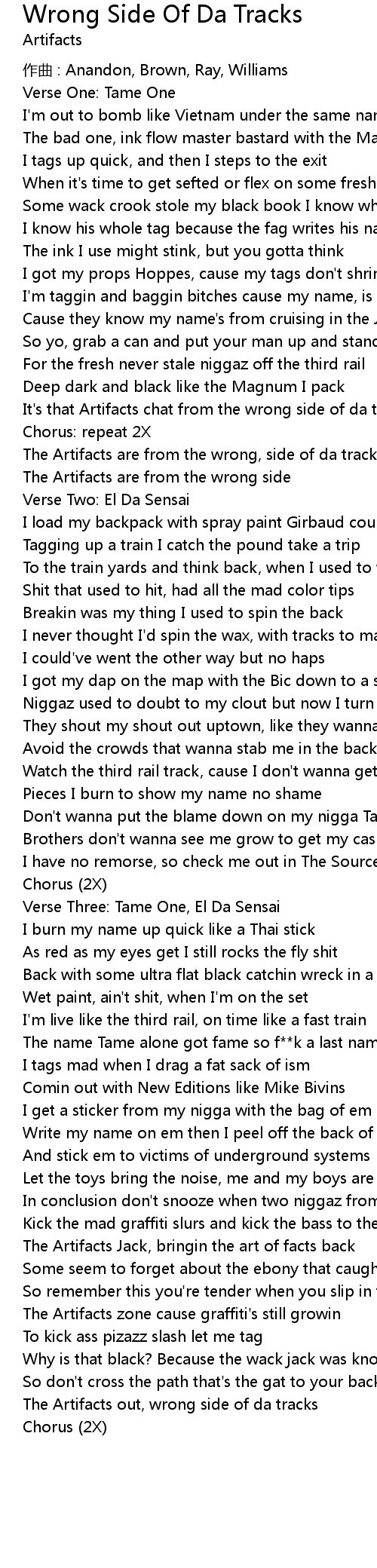 | It' s that Artifacts chat from the wrong side of da tracks | |