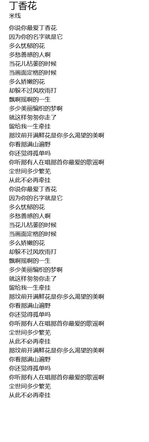 | [00:51.71] | nǐ shuō nǐ zuì ài dīng xiāng huā |