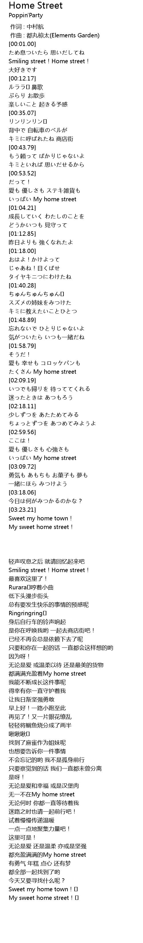 | [00:06.61] | Smiling street!Home street! |