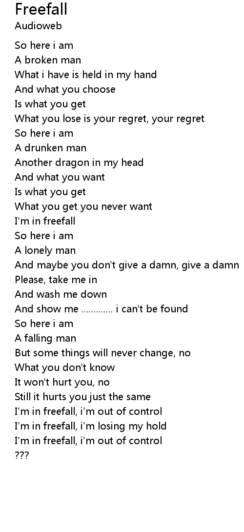 I'm in freefall, i'm out of control |