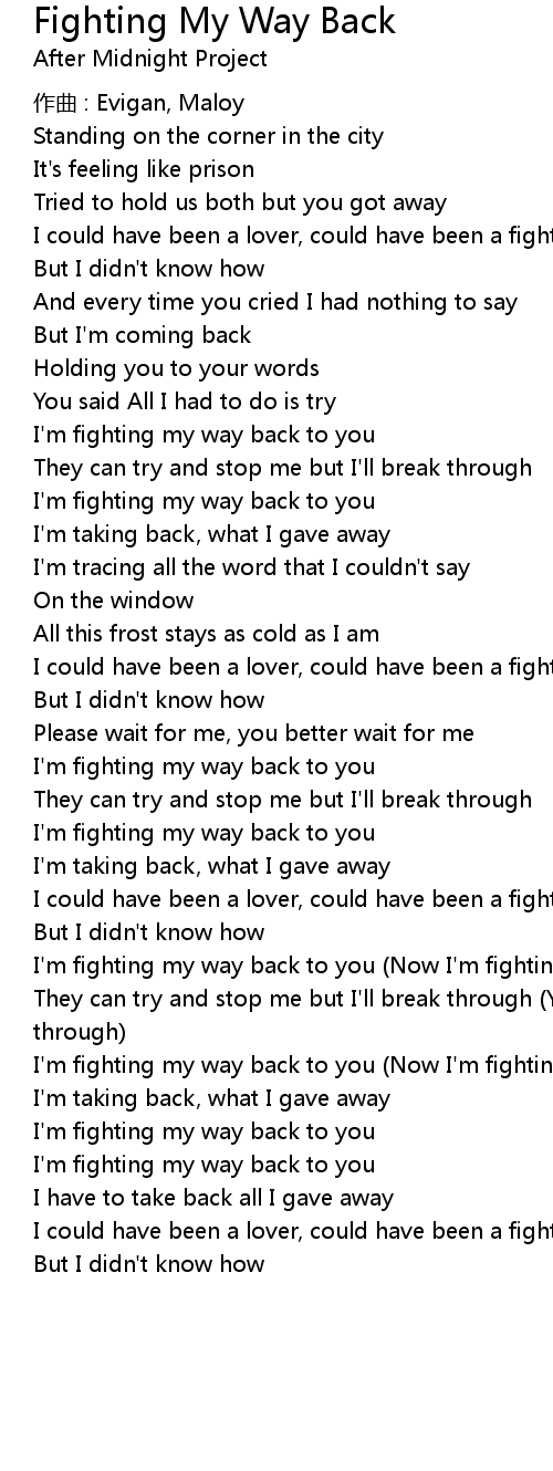 | I' m fighting my way back to you Now I' m fighting my way back | |
