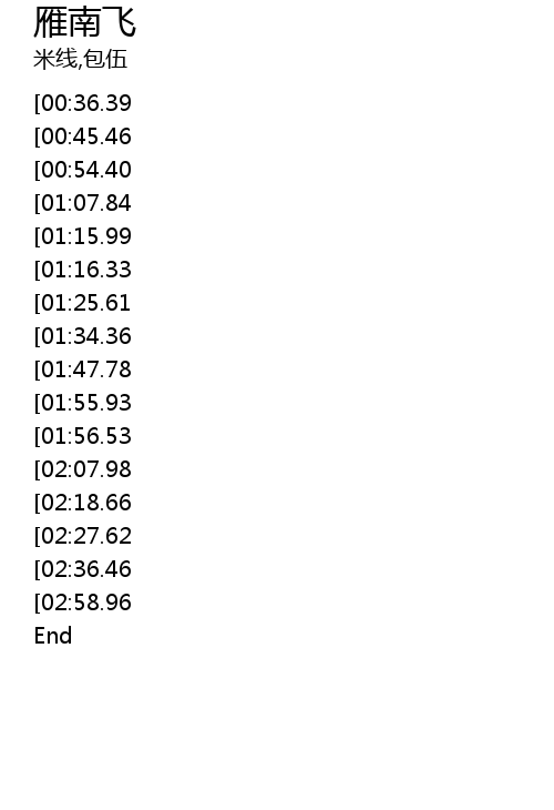 | [03:12.50][00:36.39] | 女:雁南飞 雁南飞 |
