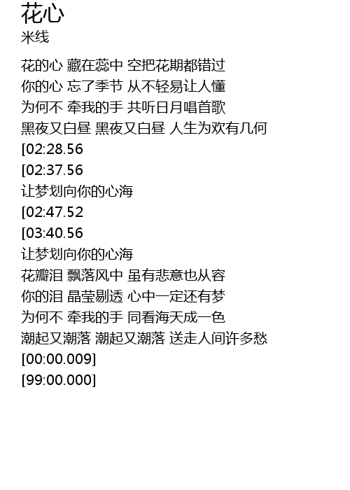 | [00:20.56] | 花的心 藏在蕊中 空把花期都错过 |