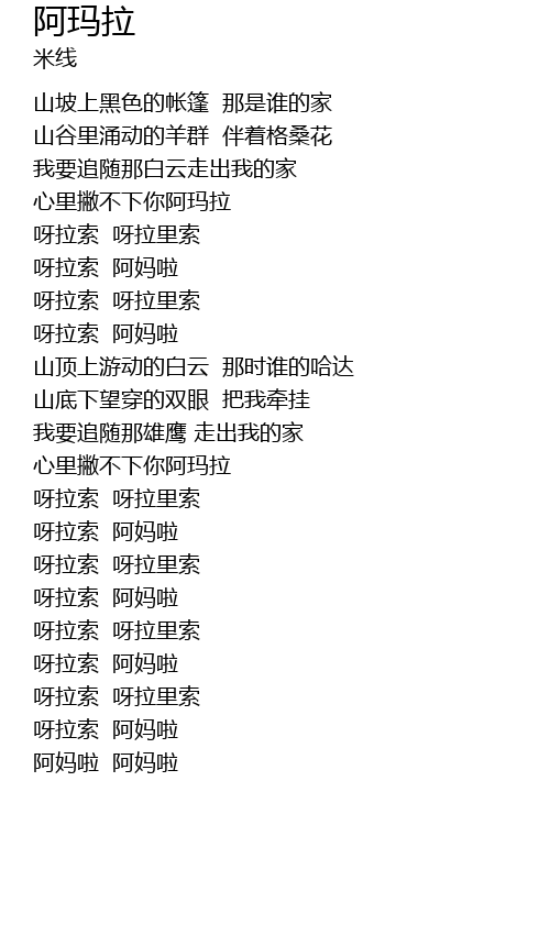 | [01:31.210] | 呀拉索 阿妈啦 |