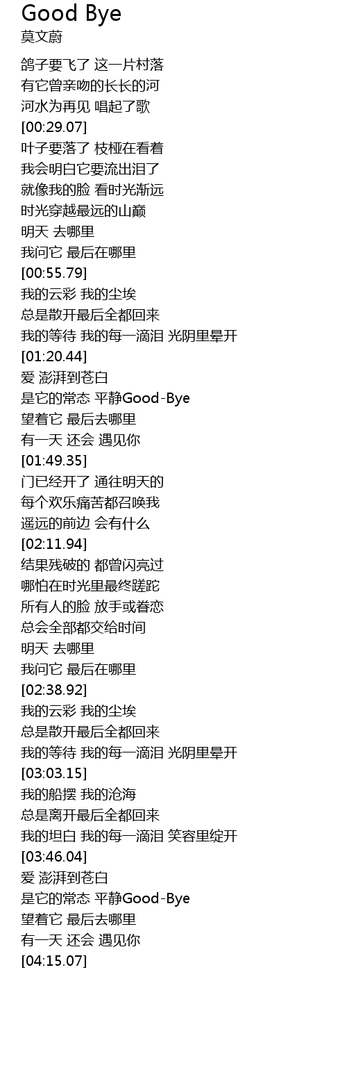 | [03:53.11] | 是它的常态 平静Good-Bye |