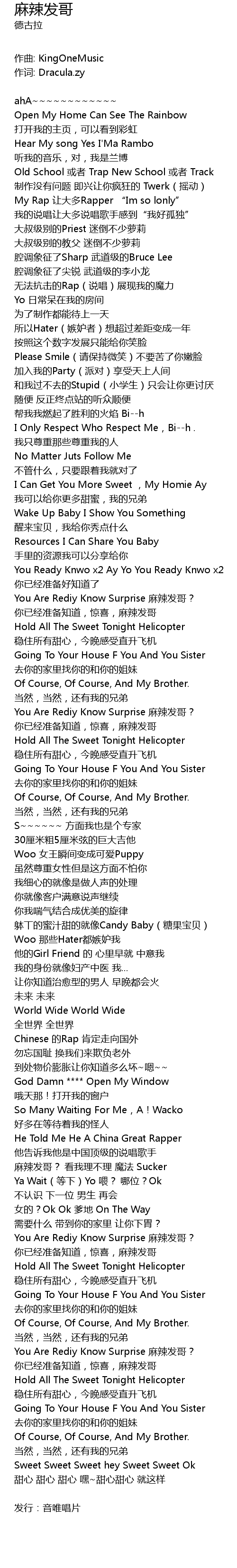 | 他告诉我他是中国顶级的说唱歌手 | |