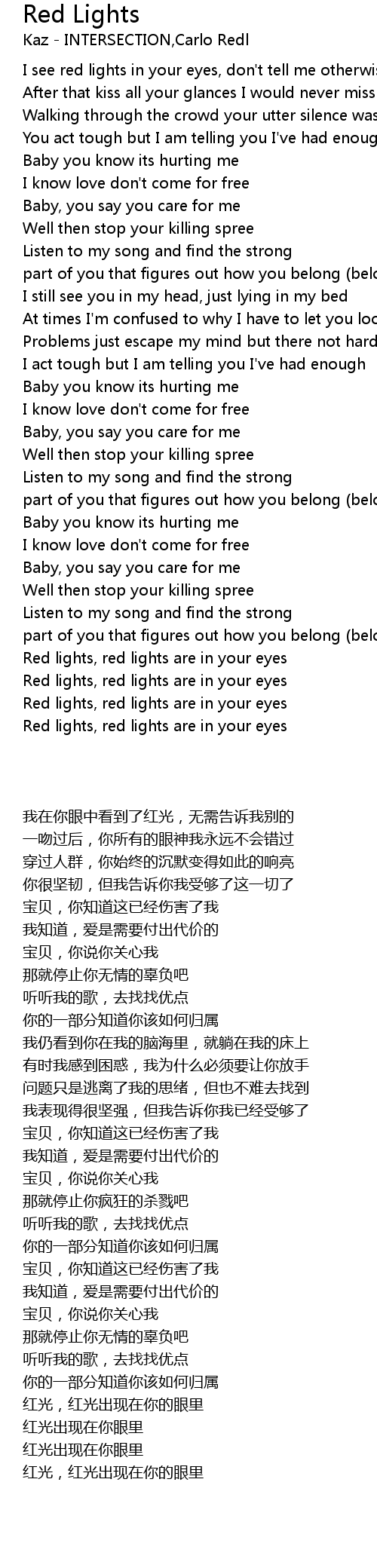 Red lights, red lights are in your eyes |