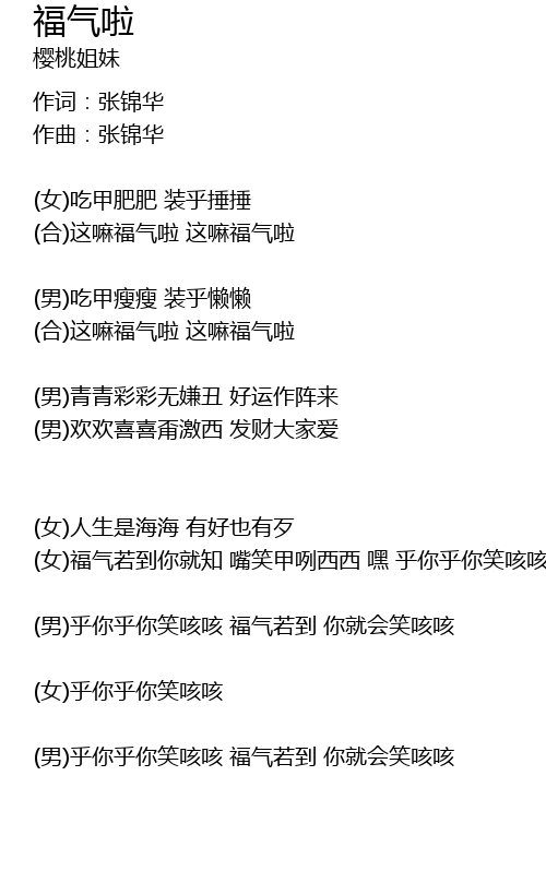 | (男)乎你乎你笑咳咳 福气若到 你就会笑咳咳 | |