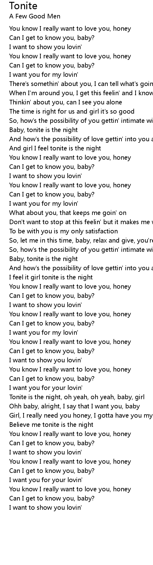 Tonite is the night, oh yeah, oh yeah, baby, girl |