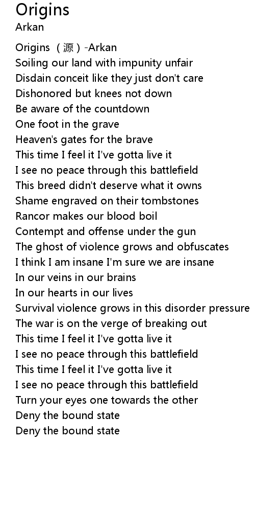 | [00:00.00] | Origins yuan Arkan |