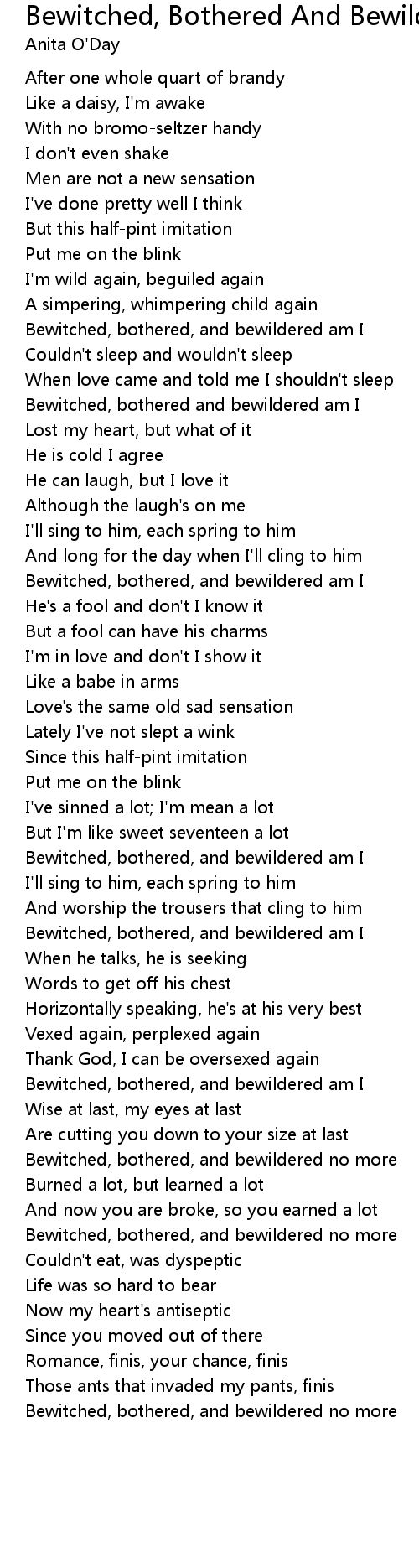 Bewitched, bothered, and bewildered am I |