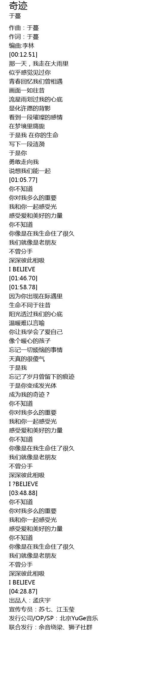 | [04:30.87] | 发行公司/OP/SP:北京YuGe音乐 |