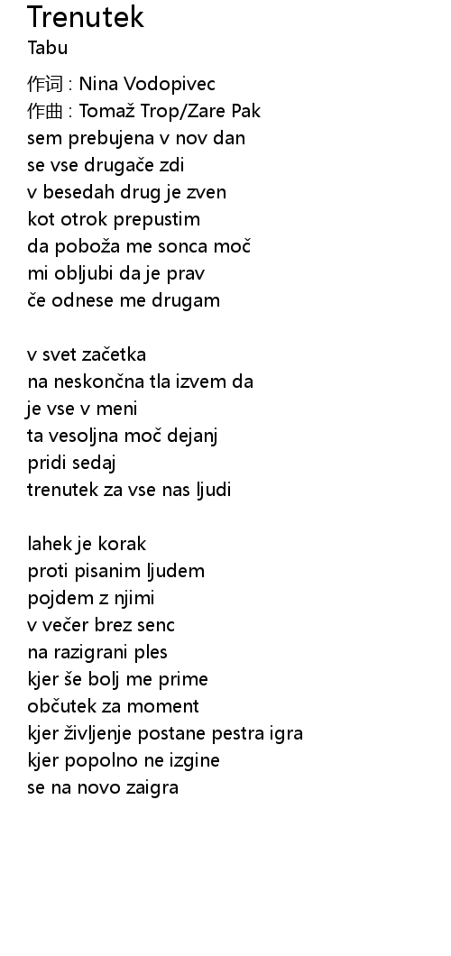 | 作词 : Nina Vodopivec | |