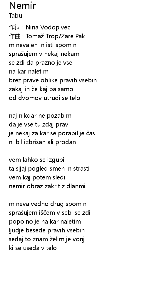| 作曲 : Tomaž Trop/Zare Pak | |