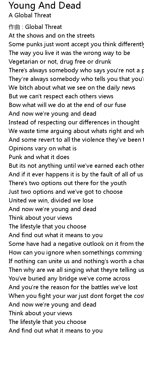 | And now we' re young and dead | |