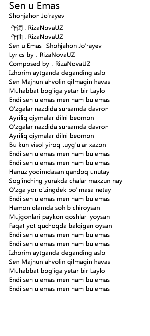 | [00:00.577] | Sen u Emas Shohjahon Jo' rayev |