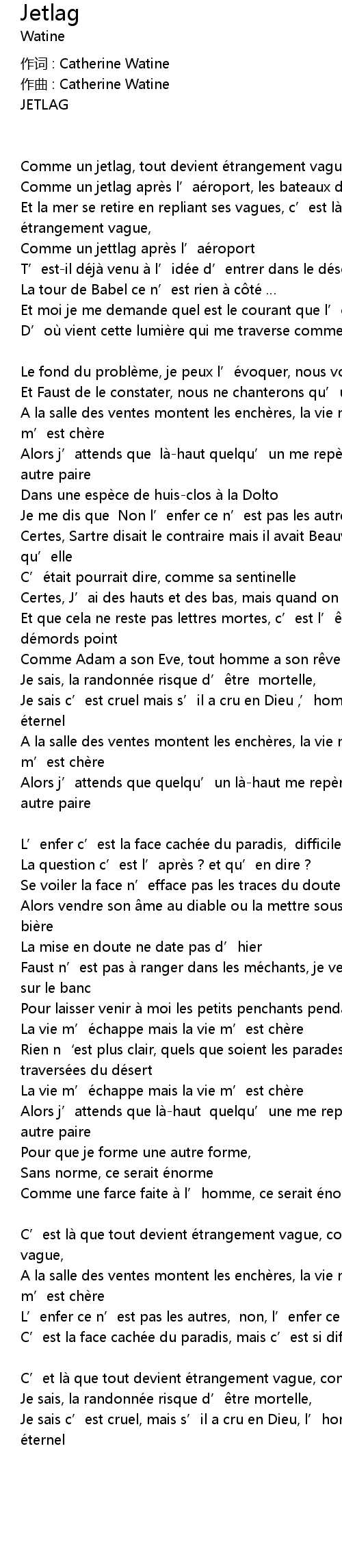 | C' et la que tout devient e trangement vague, comme un jetlag | |