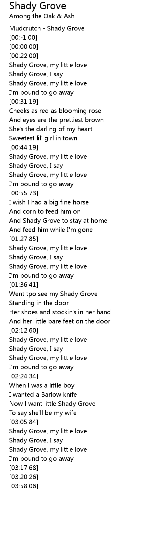 Now I want little Shady Grove |