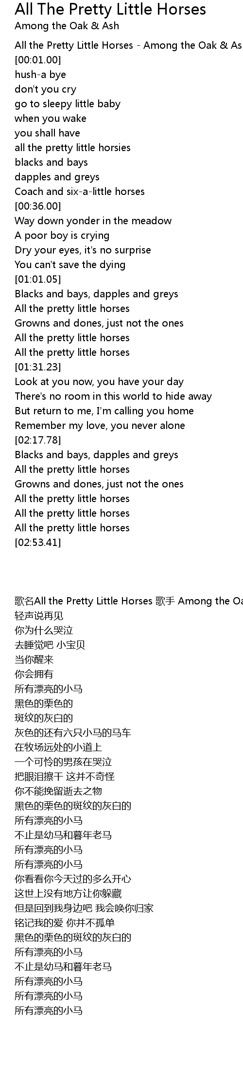 All the Pretty Little Horses - Among the Oak & Ash |