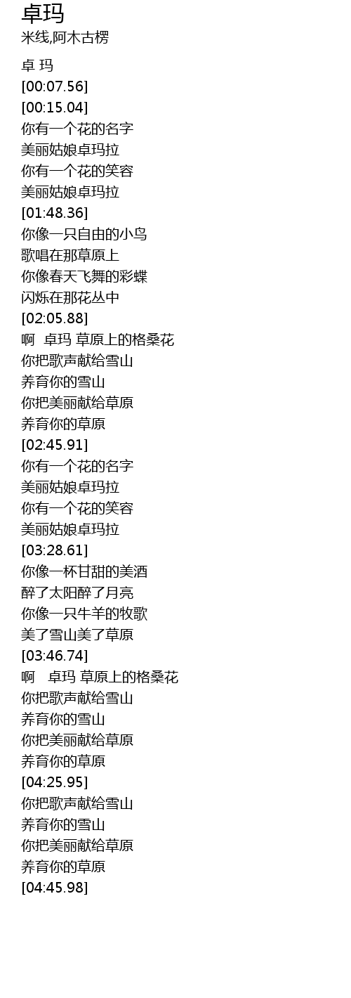 [03:49.02] 啊 卓玛 草原上的格桑花