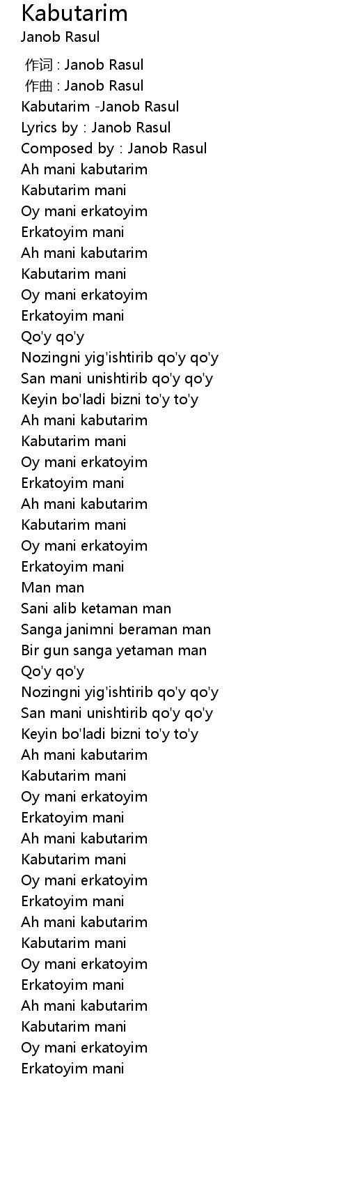 | [00:00.499] | Kabutarim -Janob Rasul |