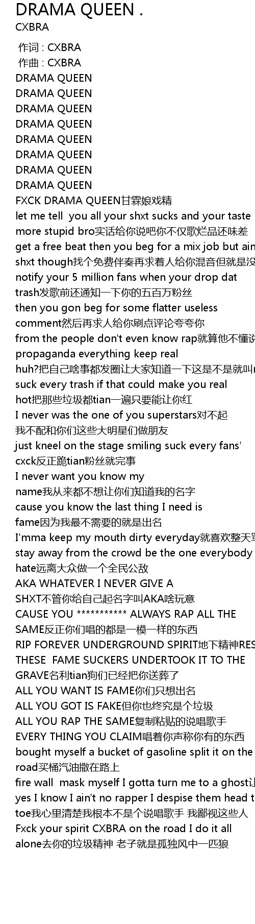 | [00:33.857] | FXCK DRAMA QUEEN gān lín niáng xì jīng |