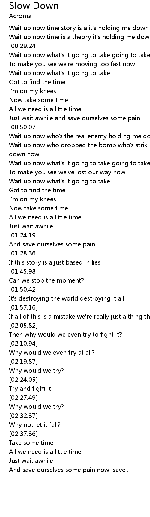 | [00:25.06] | Wait up now time is a theory it's holding me down holding me down now |