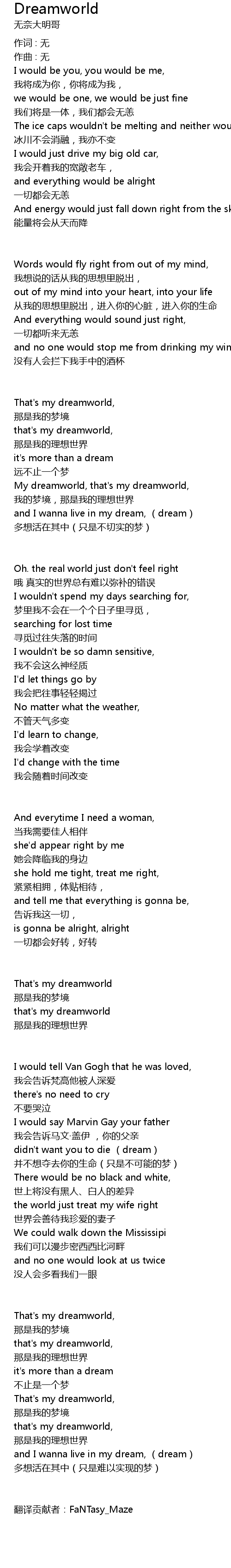 | My dreamworld, that' s my dreamworld, | |