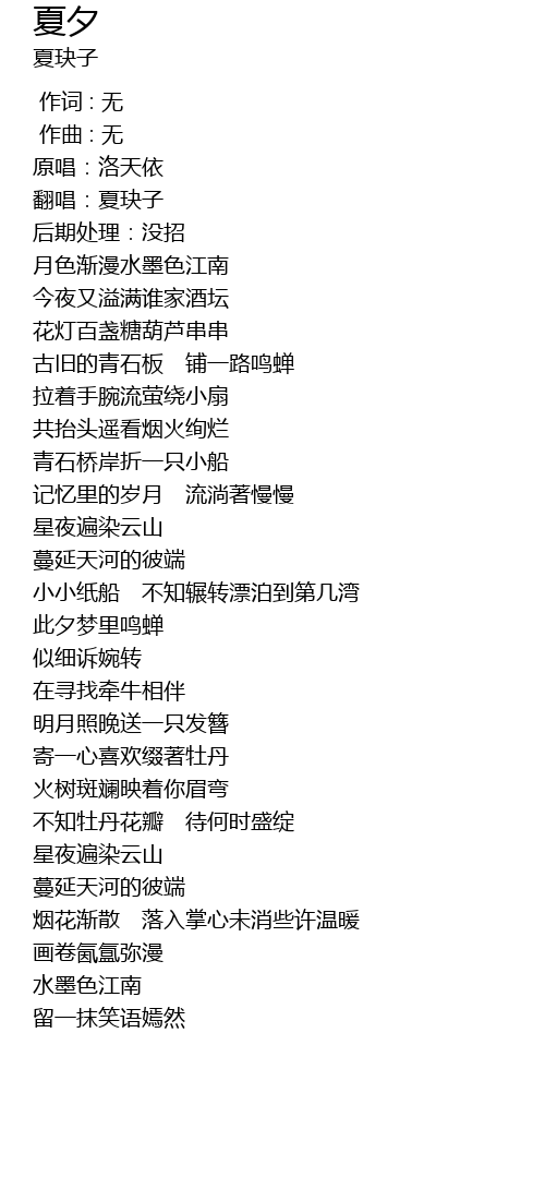 | [00:04.301] | 翻唱:夏玦子 |