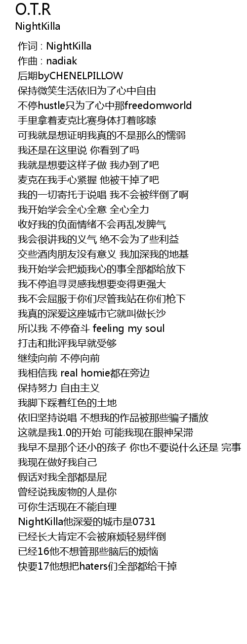 | [00:00.000] | 作词 : NightKilla |