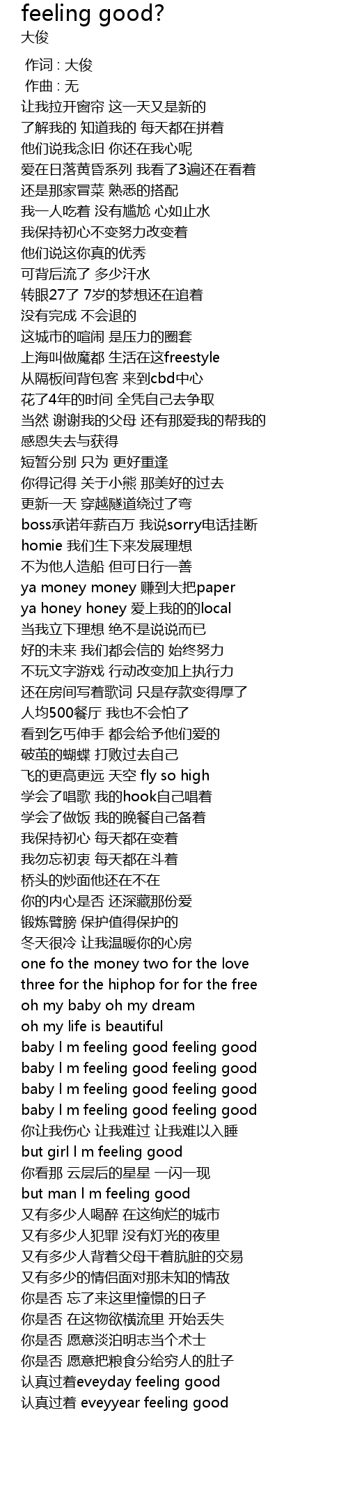 | Song | feeling good? |