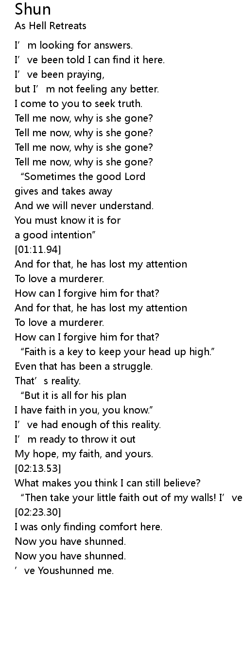 | [02:18.01] | “Then take your little faith out of my walls! I’ve had enough!” |