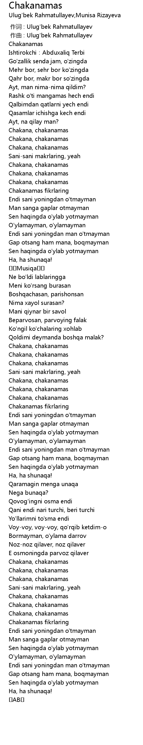 | [00:00.000] | 作词 : Ulug'bek Rahmatullayev |