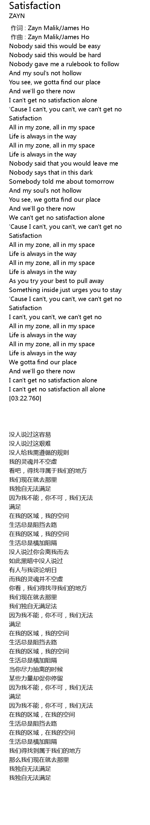 | [00:00.000] | 作词 : Zayn Malik/James Ho |