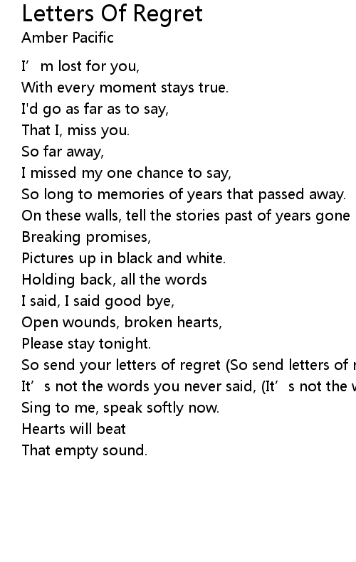 | Song | Letters Of Regret |