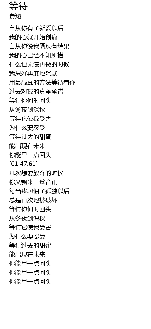 | [01:18.87] | 等待你何时回头 |