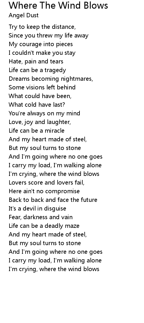 I'm crying, where the wind blows |