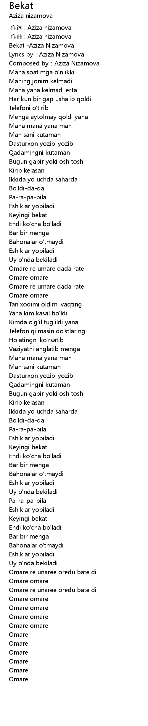 | [00:00.776] | Lyrics by: Aziza Nizamova |