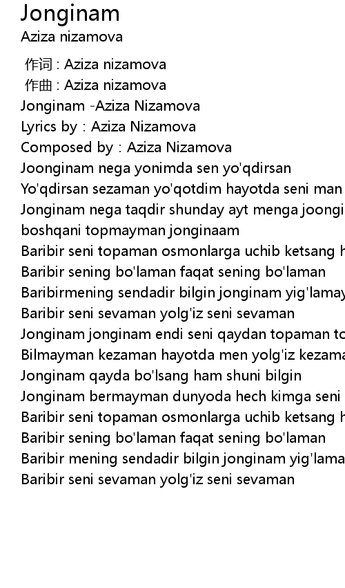 | [00:00.89] | Jonginam -Aziza Nizamova |
