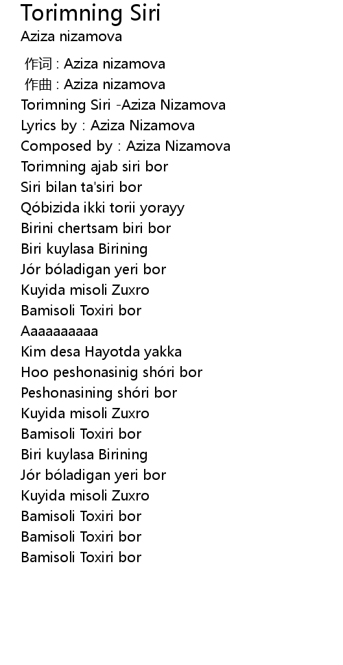 | [00:00.000] | 作词 : Aziza nizamova |
