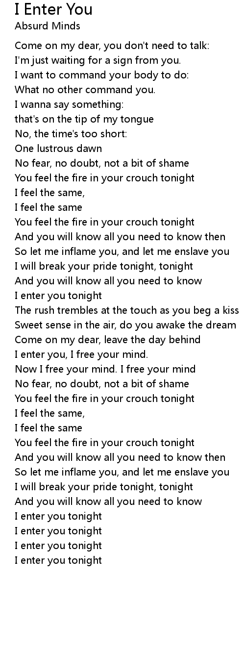 I enter you tonight |