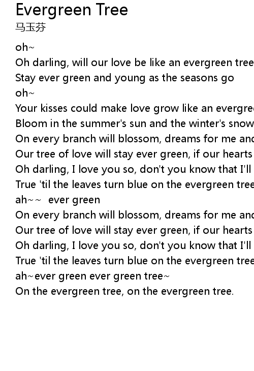 | [00:24.47] | Oh darling, will our love be like an evergreen tree |