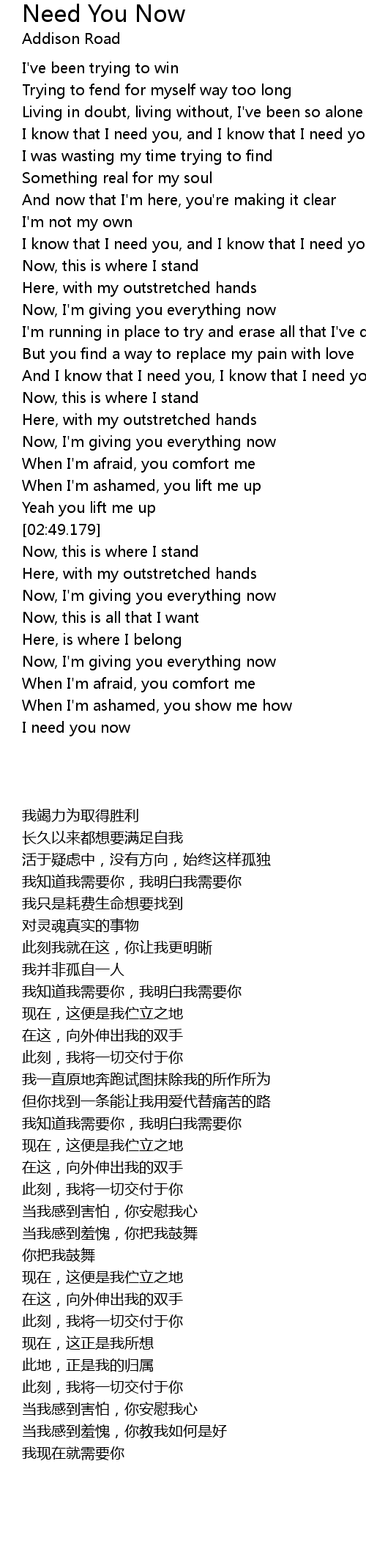 | [00:55.728] | I know that I need you, and I know that I need you now |
