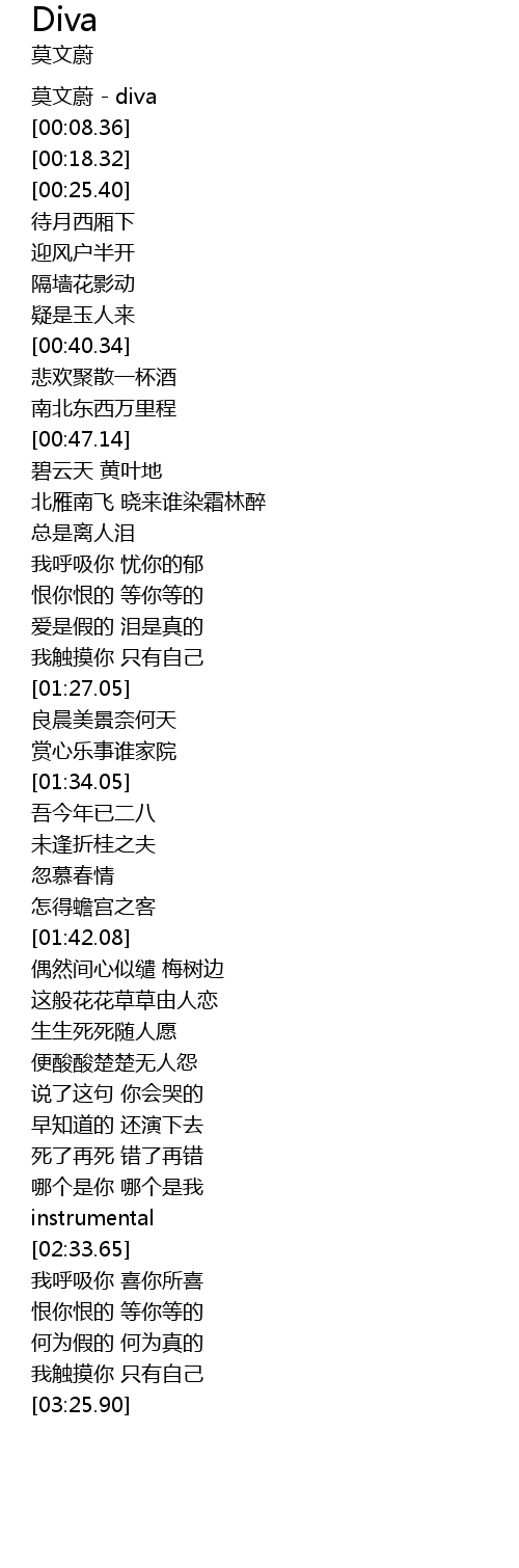 | [01:34.90] | wú jīn nián yǐ èr bā |