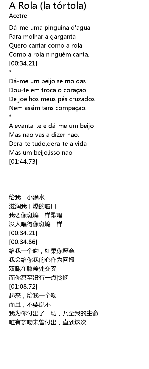 | [00:35.42] | Dá-me um beijo se mo das |
