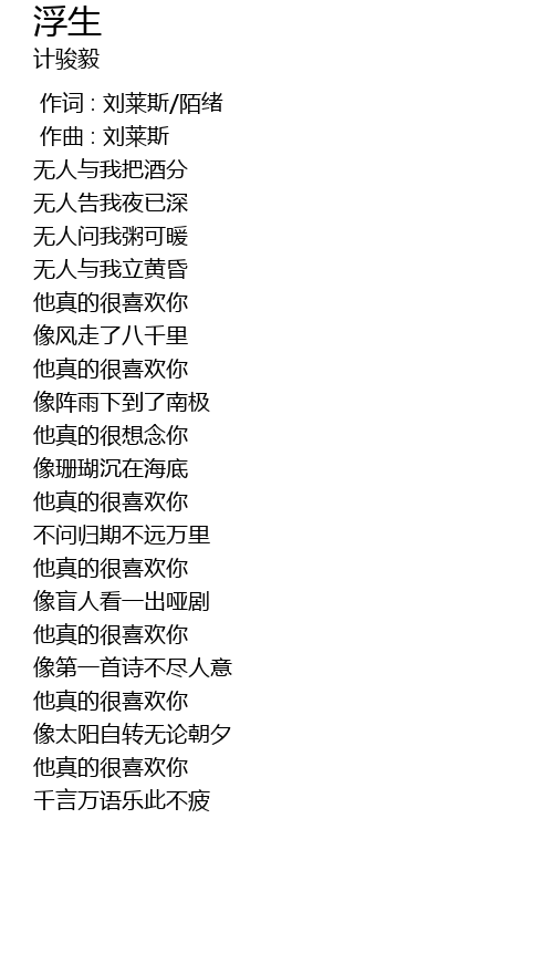 | [00:00.000] | 作词 : 刘莱斯/陌绪 |