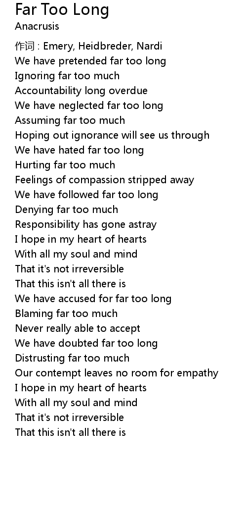 | We have hated far too long | |
