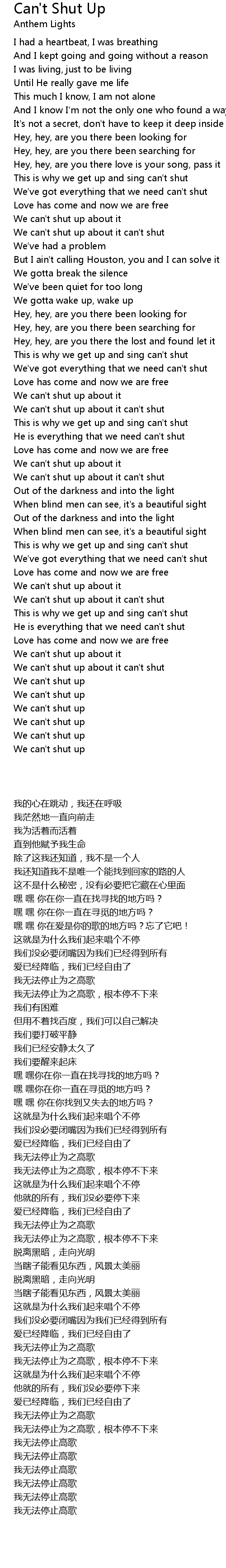 This is why we get up and sing can't shut |